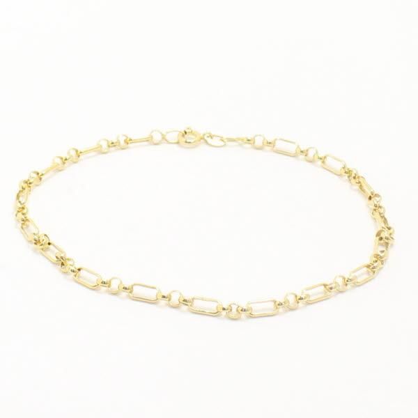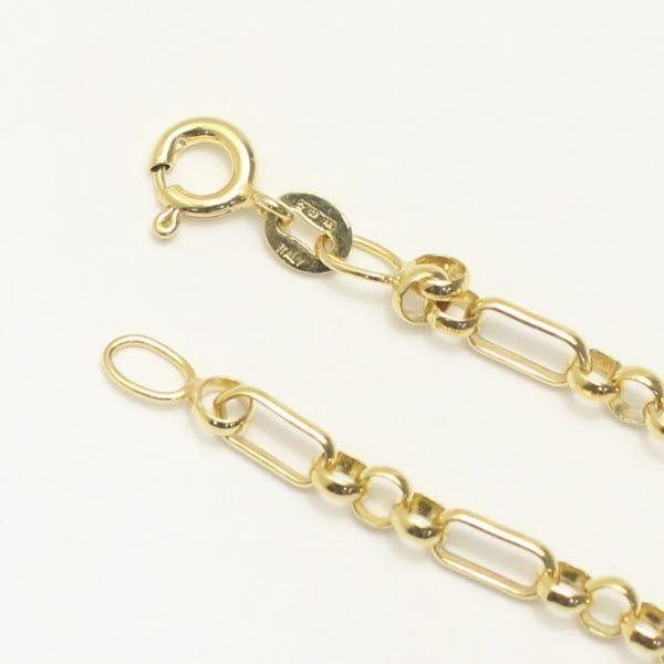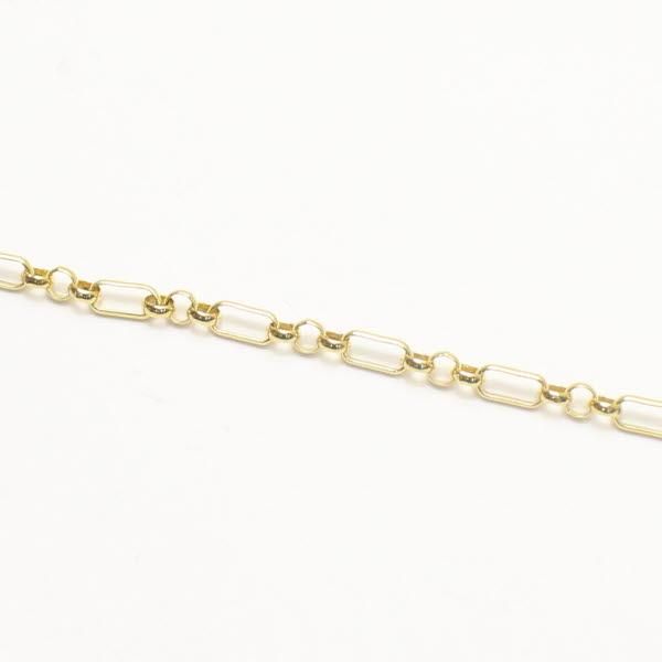 細長いコマと丸いコマのコンビネーションチェーンを使い、ゴールドの明るさが映えるデザイン。