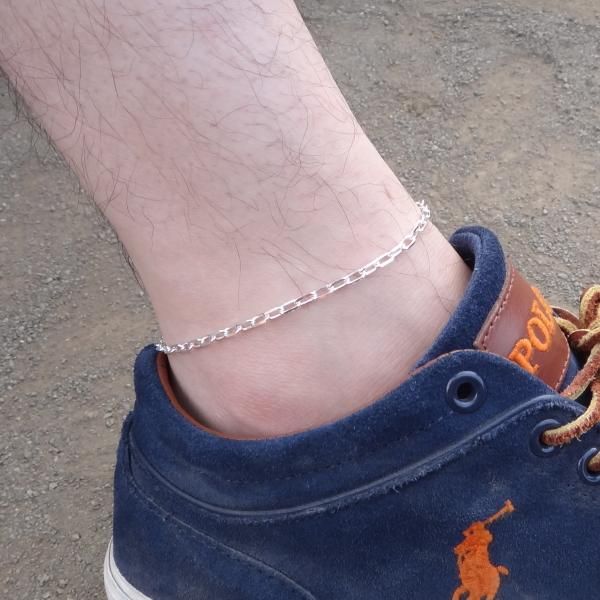 アンクレット・シルバー・長角アズキチェーン ・メンズ・男性用・シルバー925