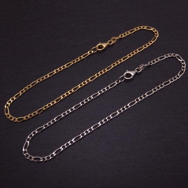 ノンブランドのシルバー925・銀製チェーンに18金メッキorロジウムメッキを施したメンズ レディース アンクレット シルバー925 フィガロチェーン。