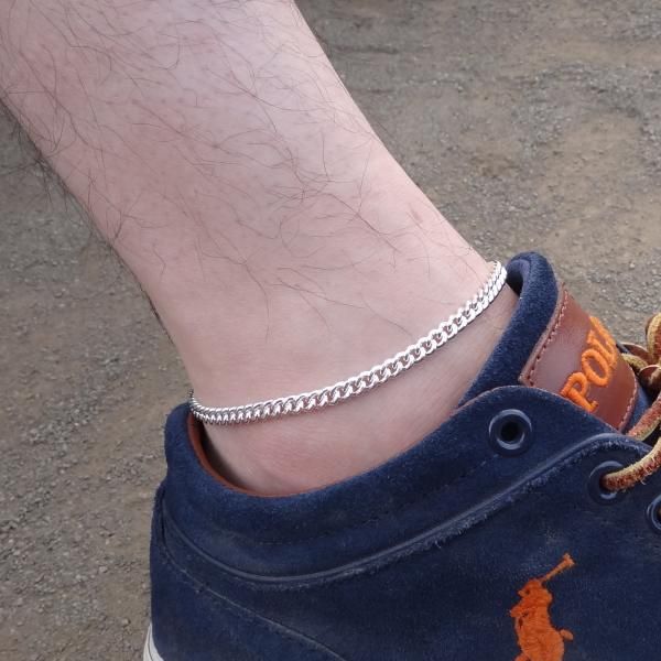 伊サツルノ社(SATURNO)の銀製 ゴールド メンズ・レディース・アンクレット・シルバー925・喜平チェーン。