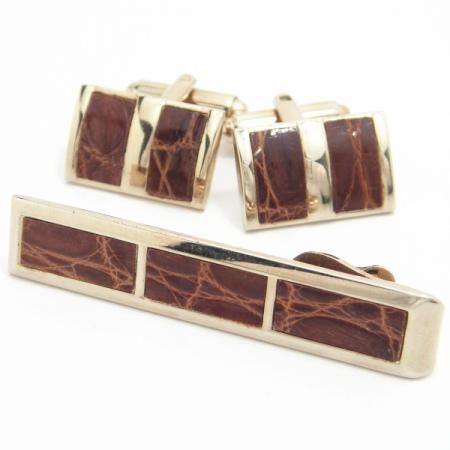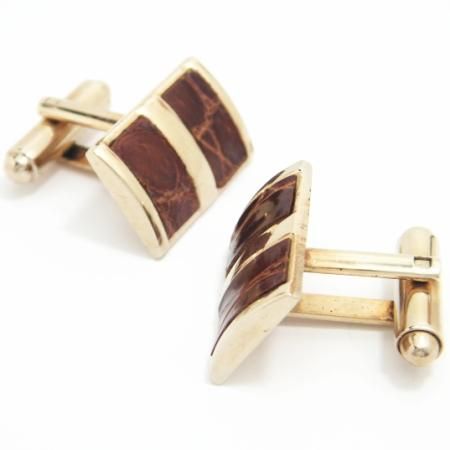 ゴールド×レザーが、とてもダンディなセットです。更に葉巻を手にしたら、『ゴッド・ファーザー』イタリア・マフィアな気分になれること間違いなし?!年代=1960年代カフスサイズ=縦:13×横:19×厚み:3(mm)タイピンサイズ=縦:10×横:52×厚み:2(mm)