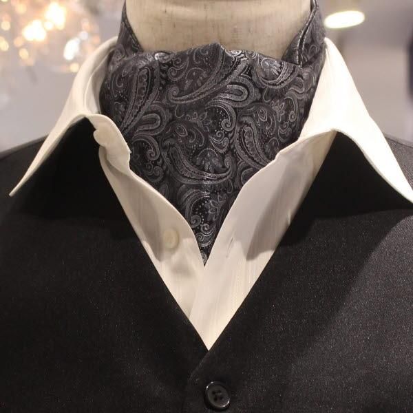 シルバーグレー・ペイズリー・ジャカード・アスコットタイ
