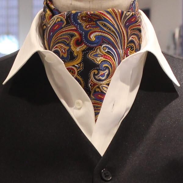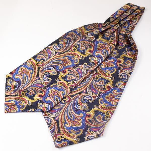 ネイビー×マルチカラー・ペイズリー・ジャカード・アスコットタイ