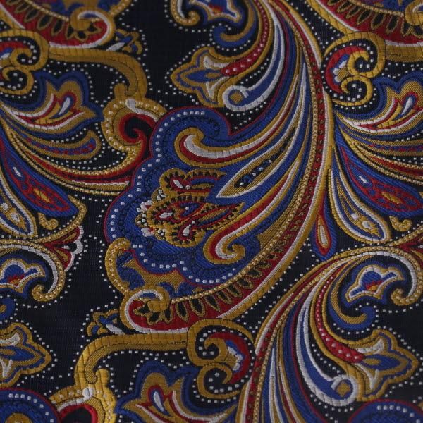 ジャカード地のネイビーに、マルチカラーのペイズリー柄がパッと目を引くクールなデザイン。