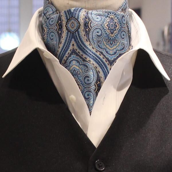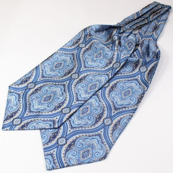 フラワー・ブルー・ペイズリー・ジャカード・アスコットタイ