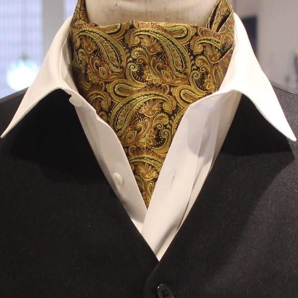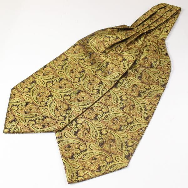 イエローブラウン・ペイズリー・ジャカード・アスコットタイ