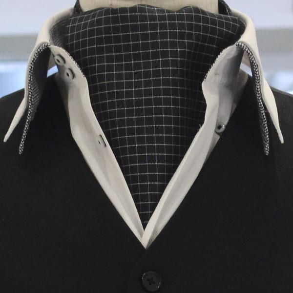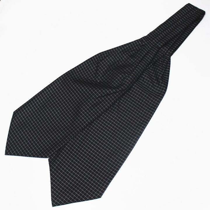 アスコットタイ メンズ用 ブラック×ホワイト チェック柄1