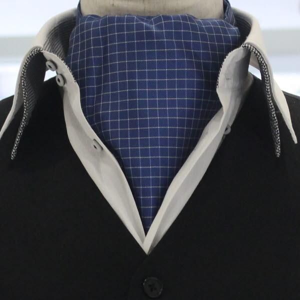 アスコットタイ メンズ用 ブルー×ホワイト チェック柄