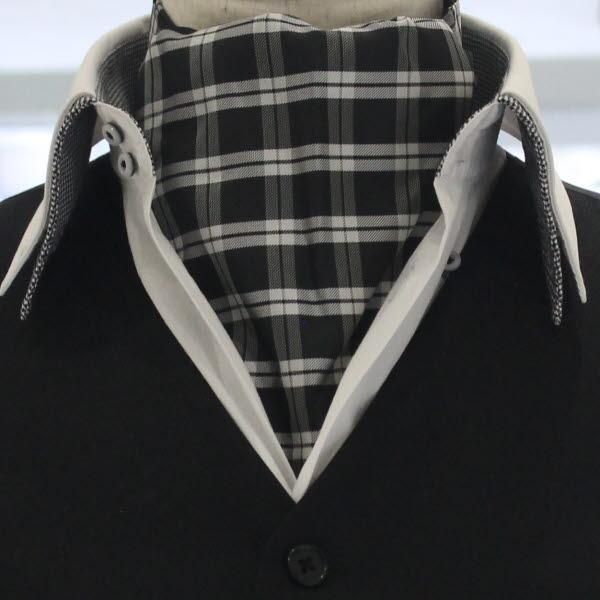 アスコットタイ メンズ用 ブラック×ホワイト チェック柄2