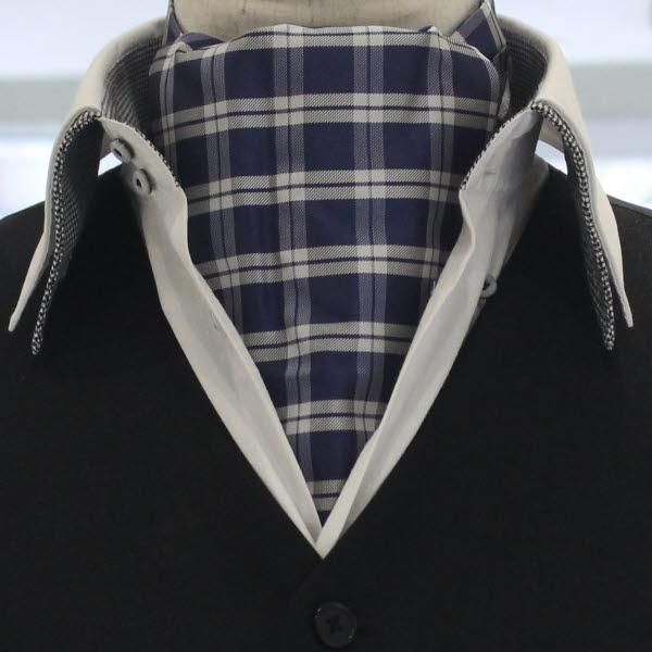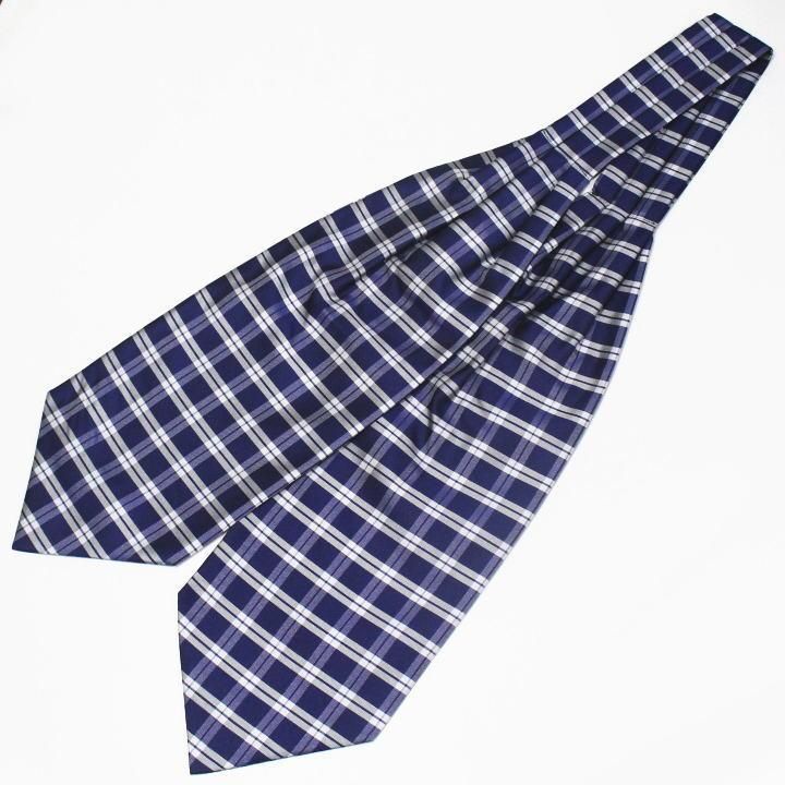 アスコットタイ メンズ用 パープル×ホワイト チェック柄2