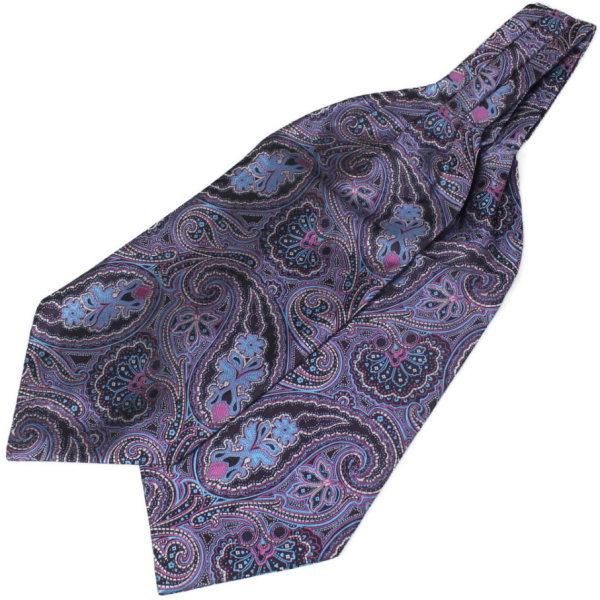 ピンク パープル ブルー ペイズリー フラワーデザイン ジャカード アスコットタイ