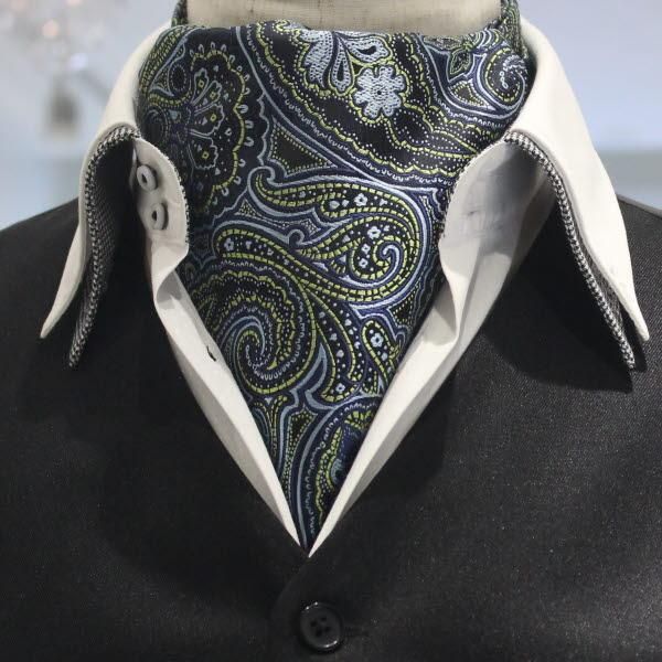 ネイビー イエロー ペイズリー フラワーデザイン ジャカード アスコットタイ