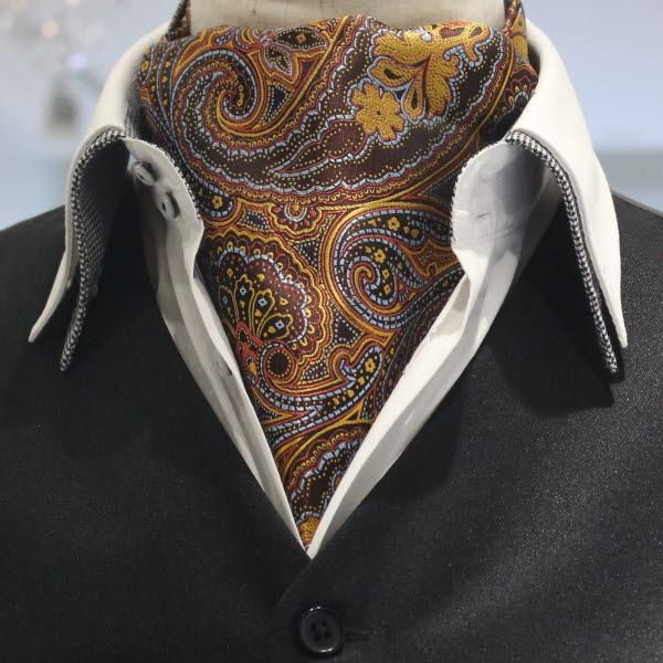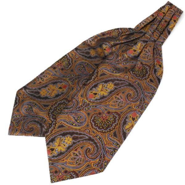 ブラウン オレンジ ペイズリー フラワーデザイン ジャカード アスコットタイ