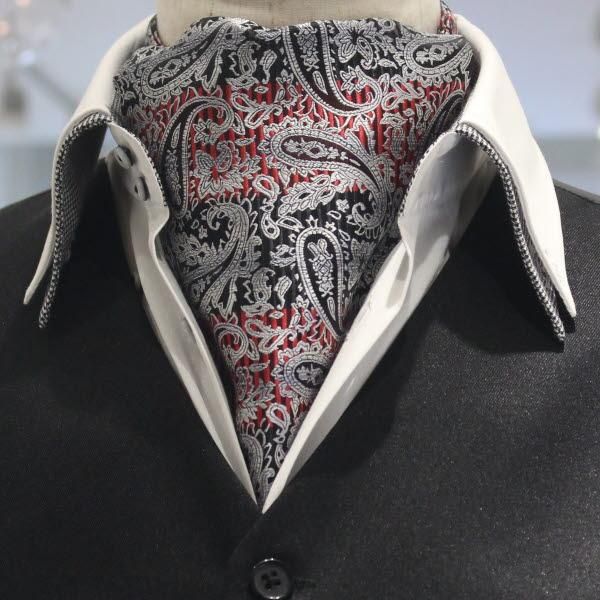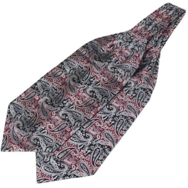ブラック レッド ボーダー ペイズリー ジャカード アスコットタイ