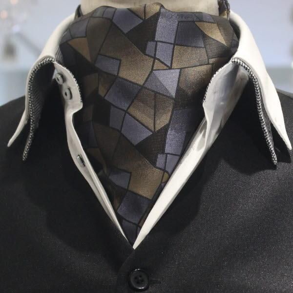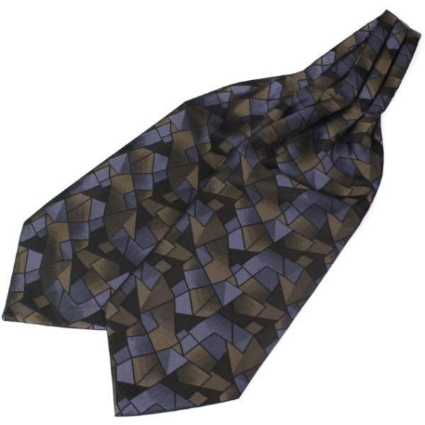 ブラウン グレー モザイク 柄 ジャカード アスコットタイ