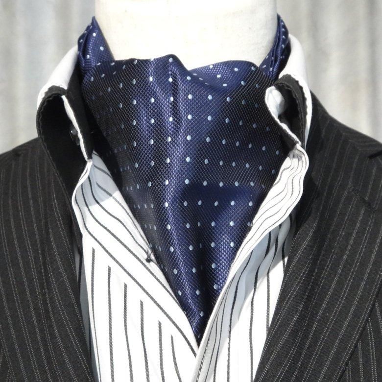 アスコットタイ メンズ用 ネイビー×水色 水玉 ドット