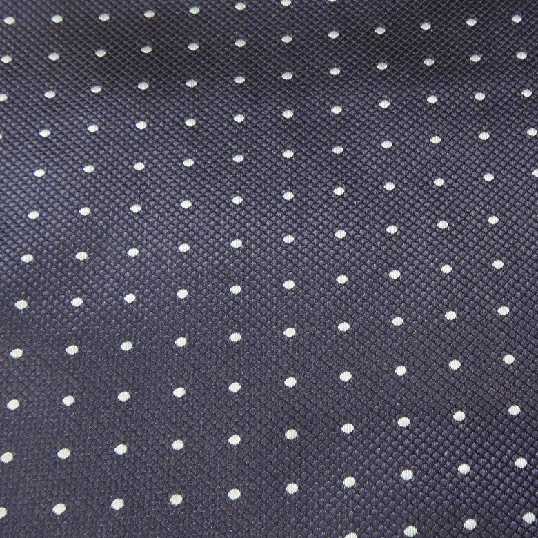 ネイビーのクロス地に水色のドットが刺しゅうされた、定番の水玉ドットデザイン。