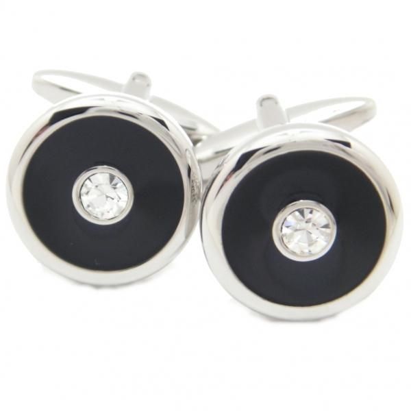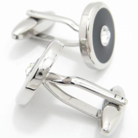 ラウンド型のブラックに、中心にはクリアストーンがキラリと光る、シンプルでいて渋さも漂うダンディなカフス。