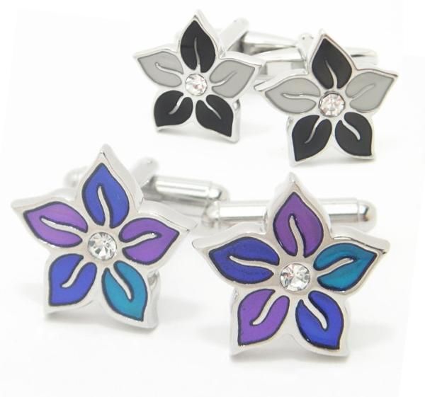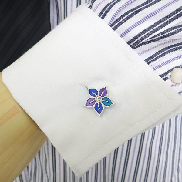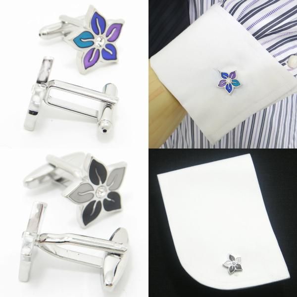 全2色・フラワーwithクリアストーン・カフス(カフリンクス/カフスボタン)