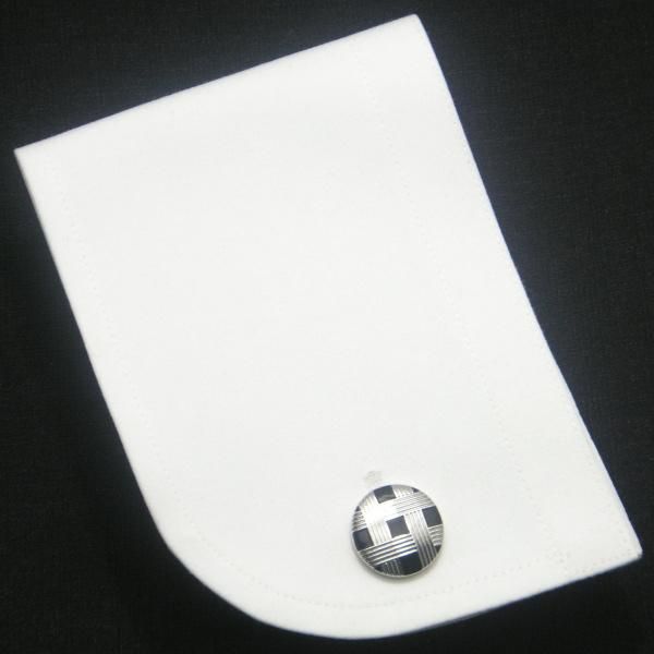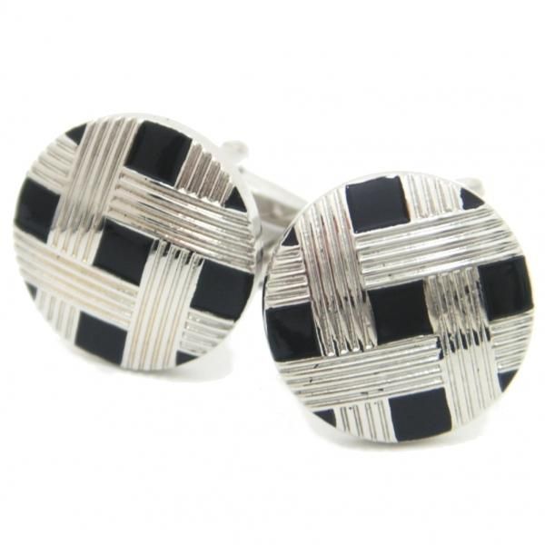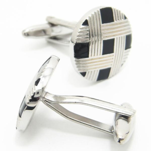 黒エナメルにシルバーの格子縞のラインが入った、モダン且つスタイリッシュなお洒落カフス。