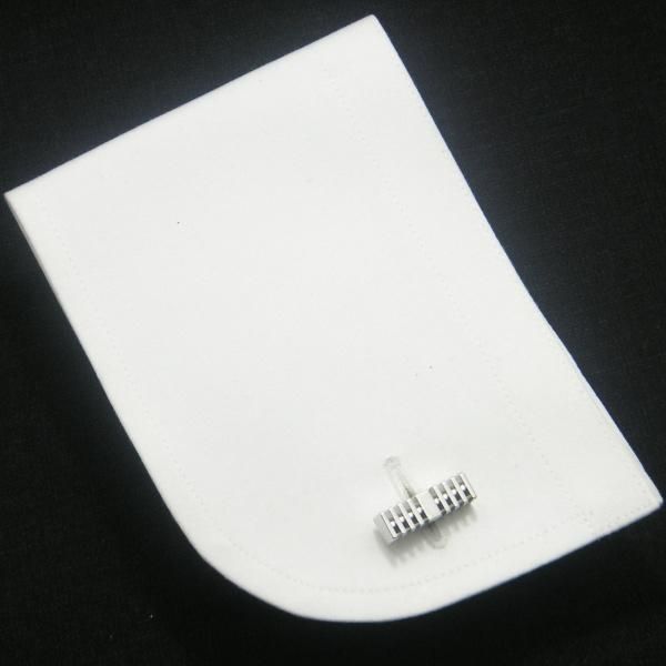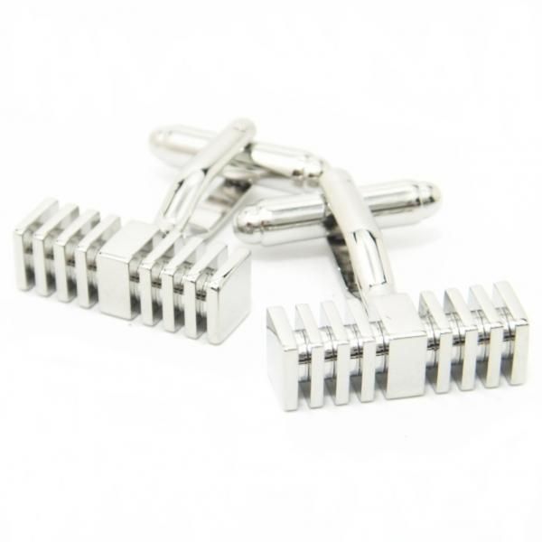 艶やかなシルバーの円柱に、スクェアが並んだモダンなデザインのカフス。