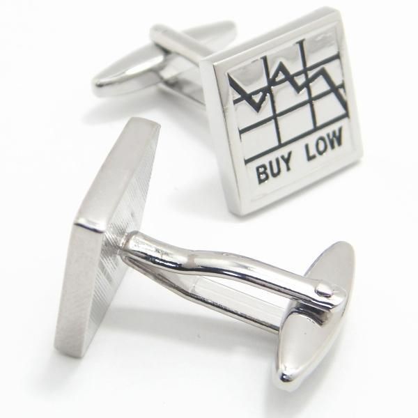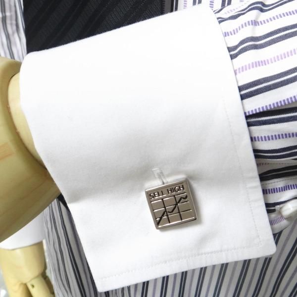 「BUY & SELL」株価チャートをデザインした、ユーモラスなデザインのカフス。