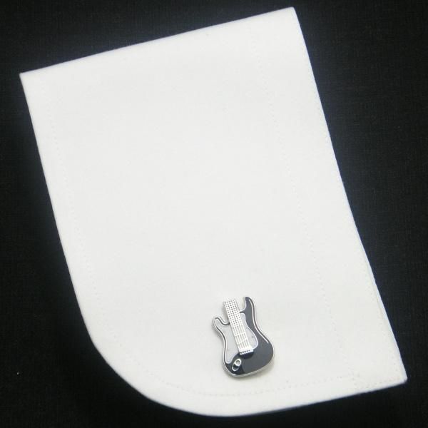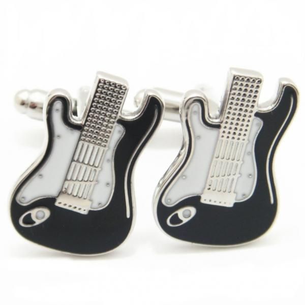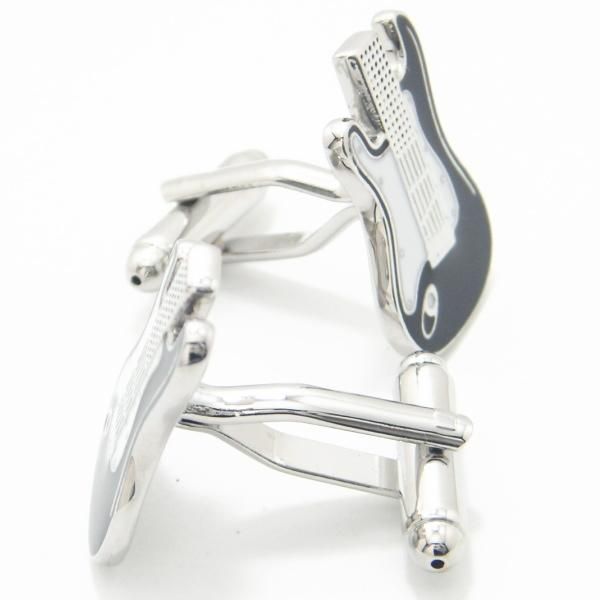 白と黒のモノトーン・カラーがスタイリッシュなエレキギターモチーフのカフス。