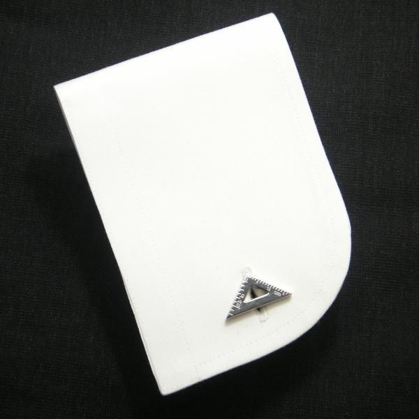 片方がセンチ、もう一方がインチで目盛のついた三角定規のカフス。