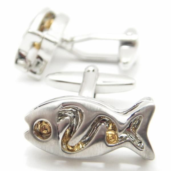 シルバーベースにゴールドのまん丸お眼目がとっても可愛いお魚カフス。