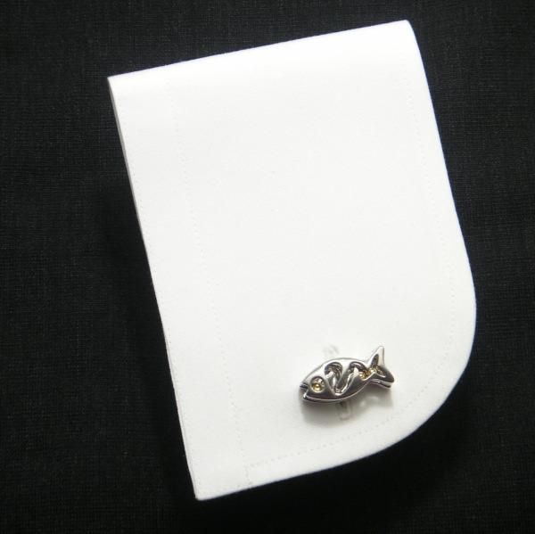 思わず袖元に、この魚の様に目がまん丸な点になっちゃうユーモラスなお魚のカフスです。