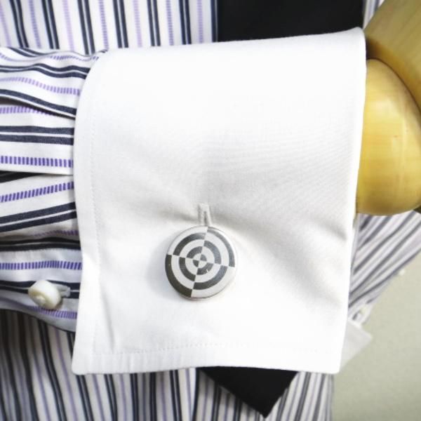 ハイセンスな魅力!レザーターゲットのシルバーカフス(カフリンクス/カフスボタン)