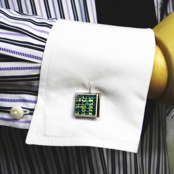 グリーングラデーションがキラキラまばゆいカフス(カフリンクス/カフスボタン)