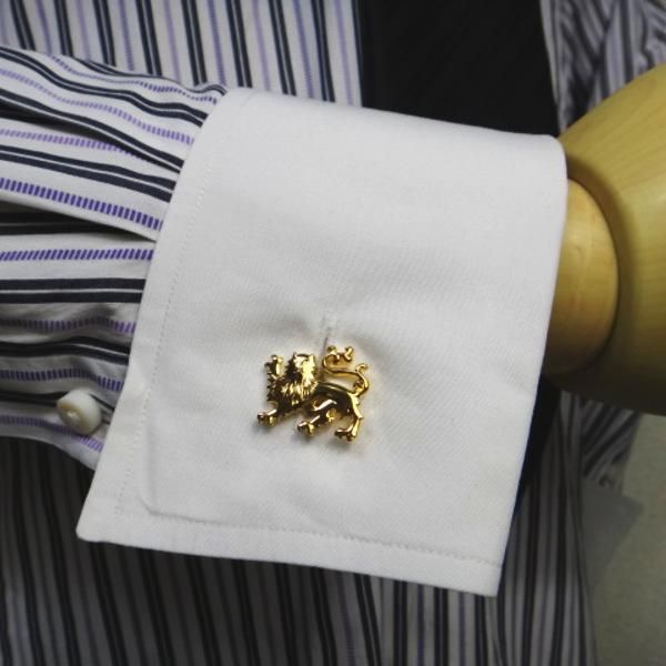 ゴールドに輝くライオンモチーフのカフス。