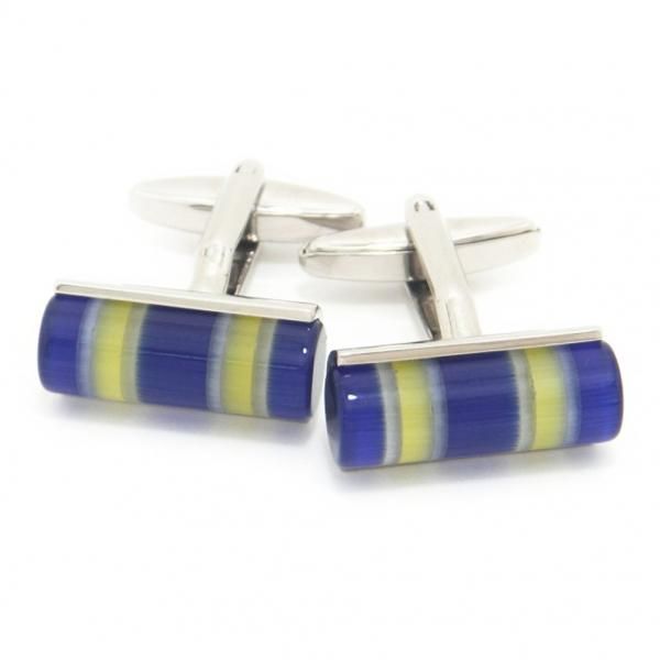 ブルー×イエロー・キャッツアイ・夏の陽射しの様に爽やかなカフス(カフリンクス/カフスボタン)