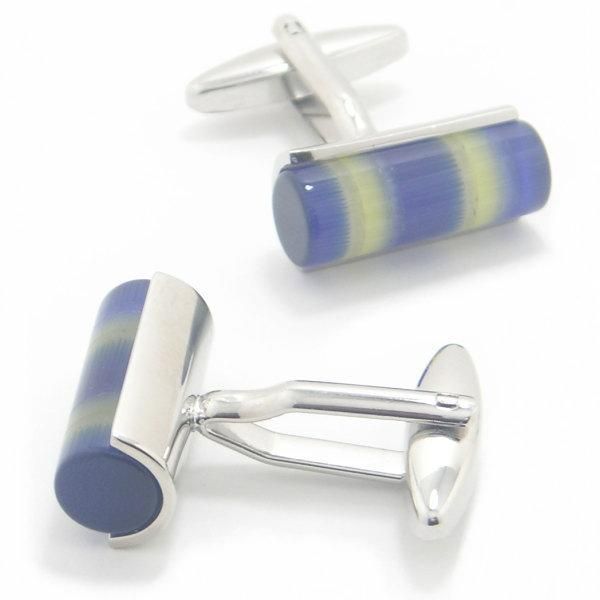 ブルー、イエロー、ホワイトのキャッツアイが鮮やかなカラフルなカフス。
