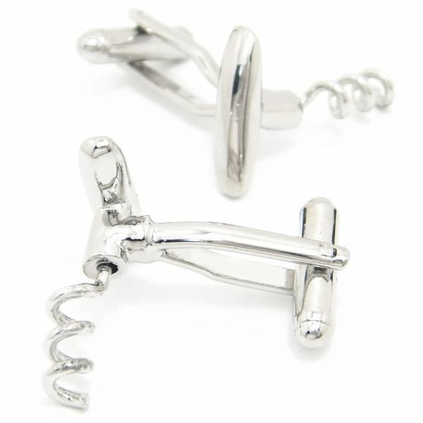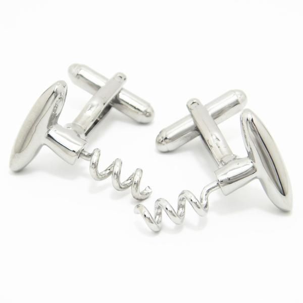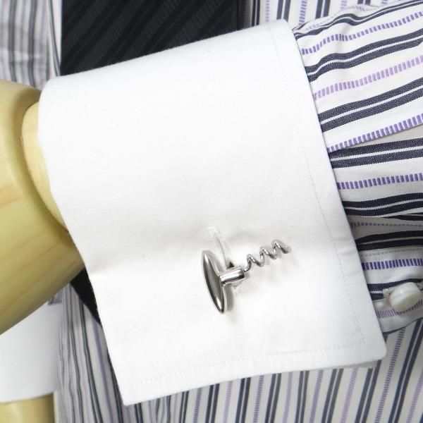 ワインのコルクを開けるワインオープナー(コルクスクリュー)をモチーフにした、ユーモラスなカフスボタン。