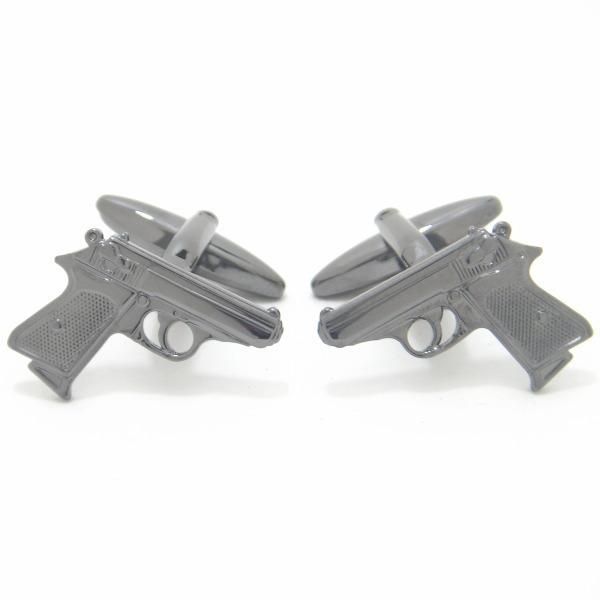 メタリックブラックな拳銃のカフス(カフスボタン/カフリンクス)