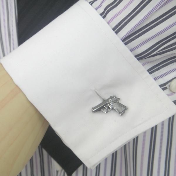 メタリックブラックが雰囲気を出している拳銃のカフスです。