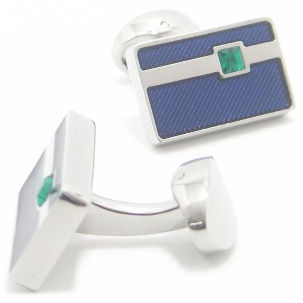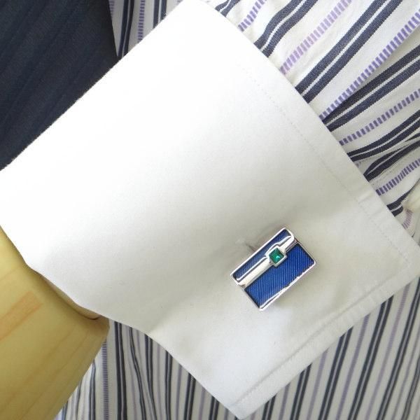 スクウェアベースに、一直線のライン、そしてスクウェアストーンという直線を多用したデザインが、近代的で洗練されたデザインのカフス。