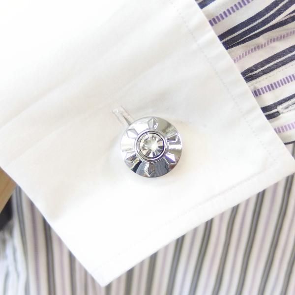 シルバー・シールド・クリアストーンのカフス(カフリンクス/カフスボタン)