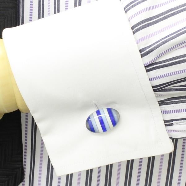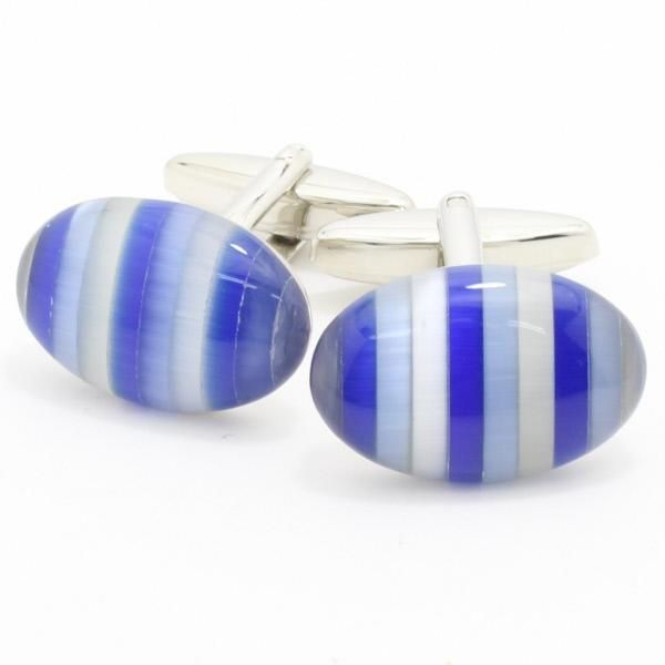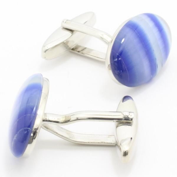 オーバル・キャッツアイ・ストライプ・ブルーのカフス(カフリンクス/カフスボタン)
