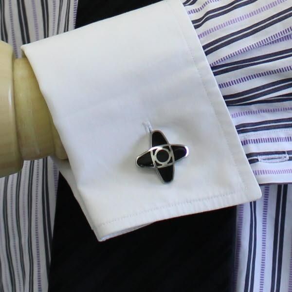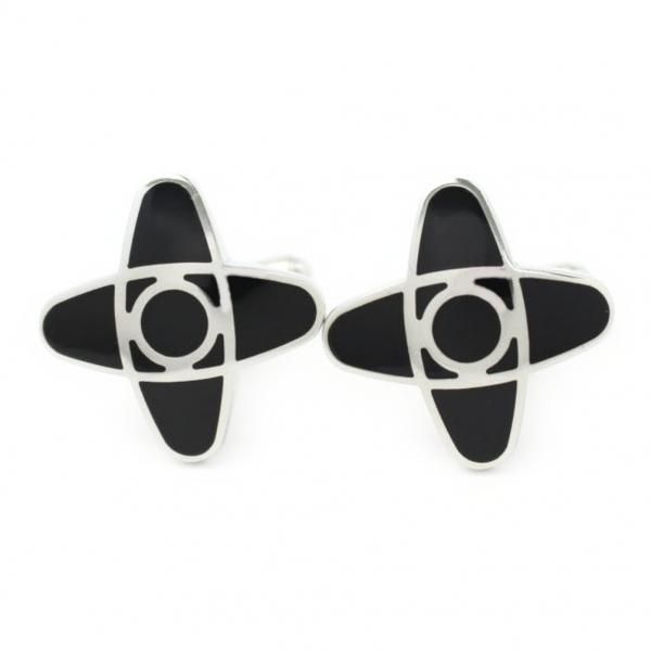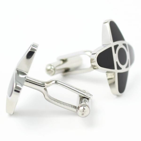 黒いクロスデザインが近代的なムードのカフスボタン。