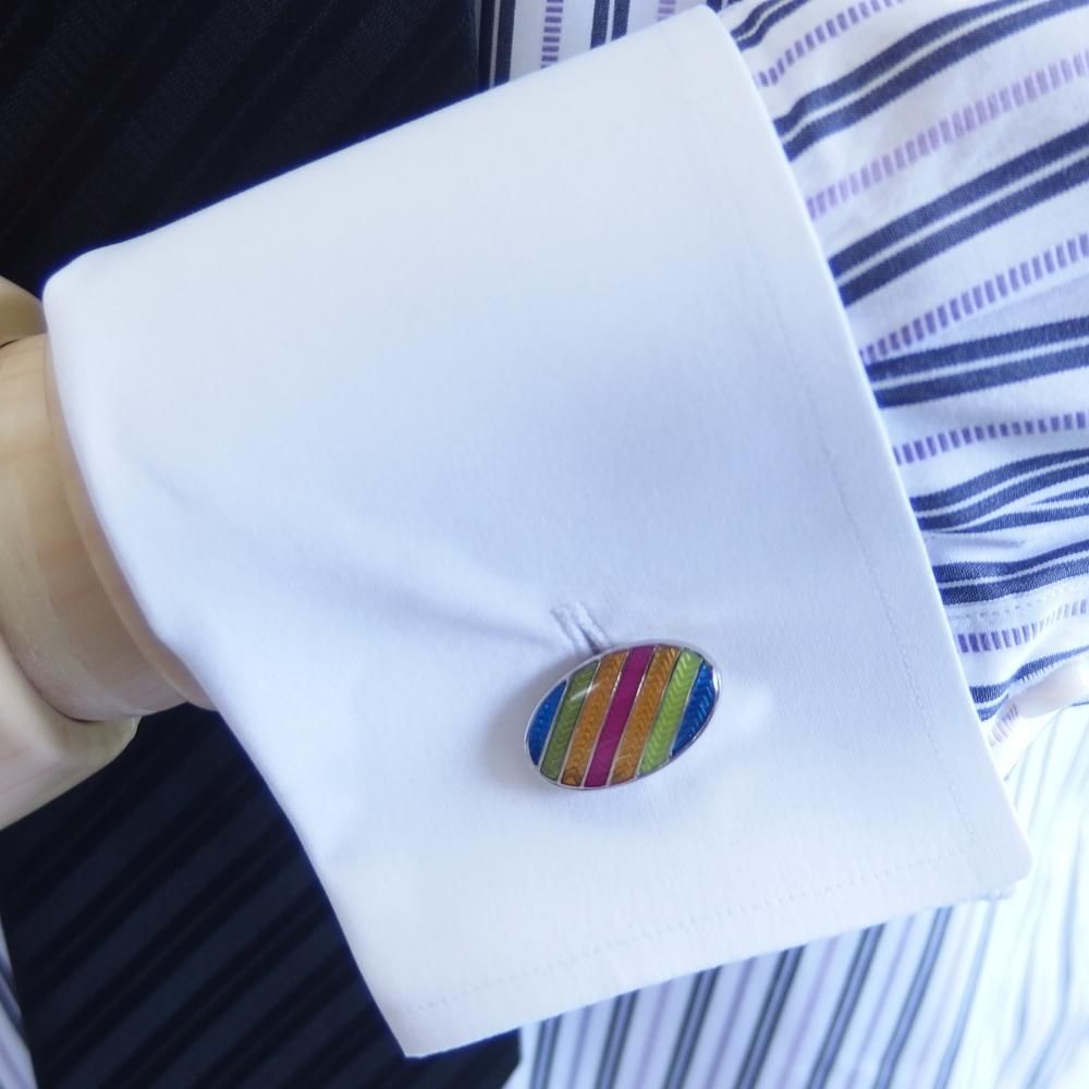オーバル・カラフル・ボーダーのカフス(カフリンクス/カフスボタン)