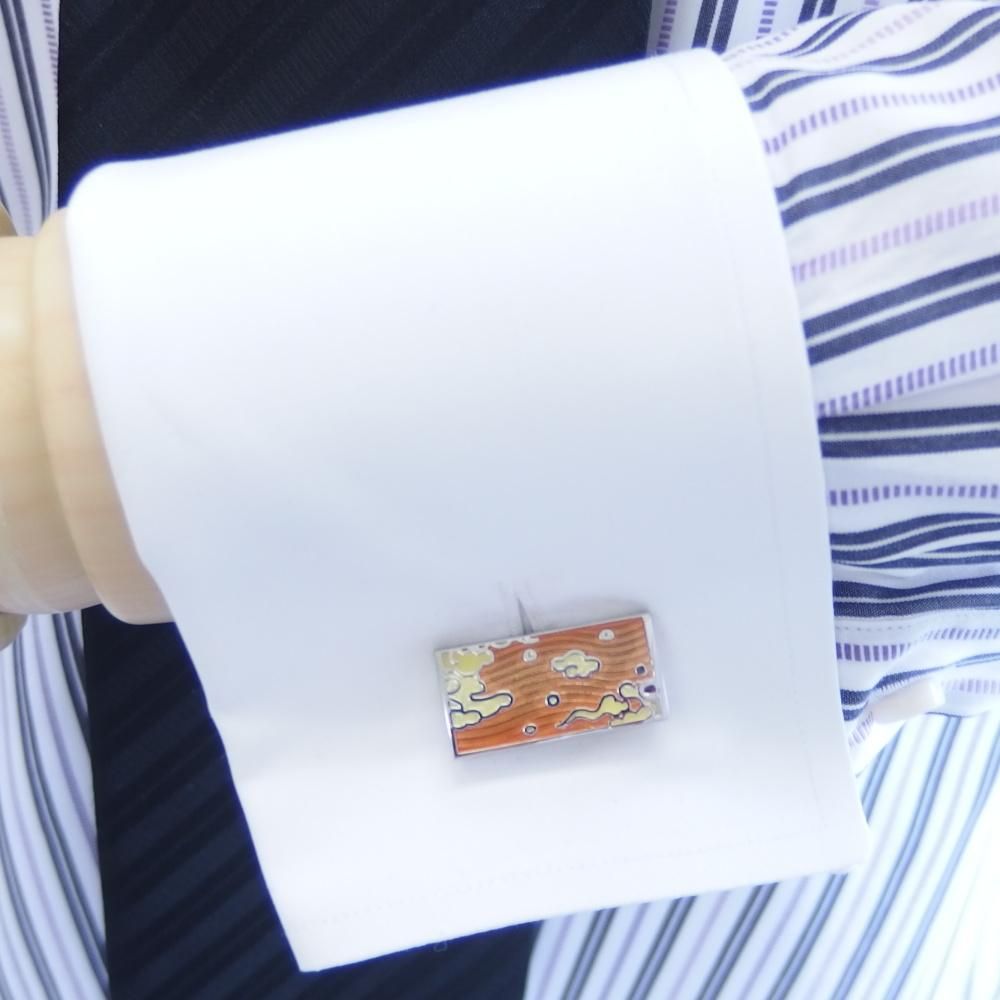 オレンジ・中華風雲デザインのカフス(カフリンクス/カフスボタン)