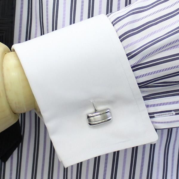 シルバーオンリーの超シンプルな色感でありながら、緩やかなカーブ・丸みが親しみやすさを、艶シルバーとマットなシルバーのシャープなラインが力強さを、現すように輝くカフスボタン。