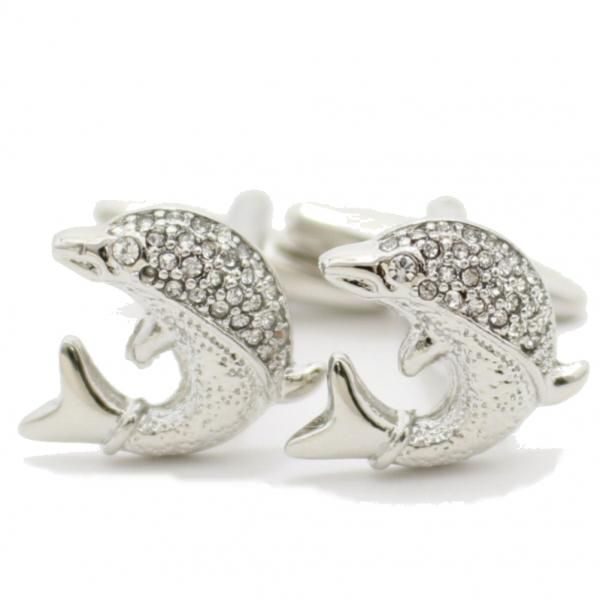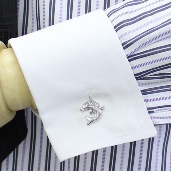 きらきらストーンとドルフィン・イルカのカフス(カフリンクス/カフスボタン)