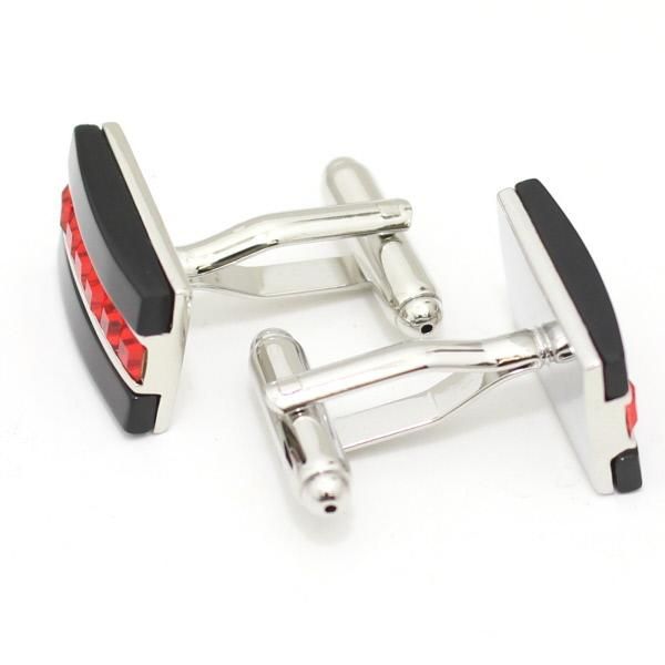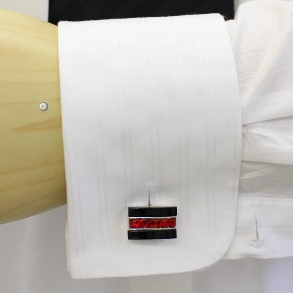 ブラックストーンにシルバーと赤いストーンがセンターに並んだ、男らしくも赤色のアクセントがとってもゴージャスでお洒落なカフスボタン。