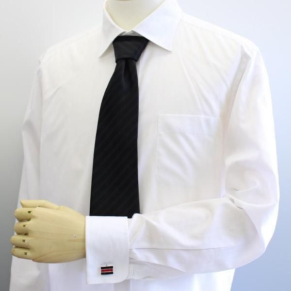 白シャツの袖にバリッと映える、存在感満点のカフスです。