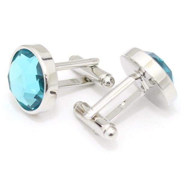 アクアブルー・キラキラ・ラウンド・カットストーンのカフス(カフリンクス/カフスボタン)