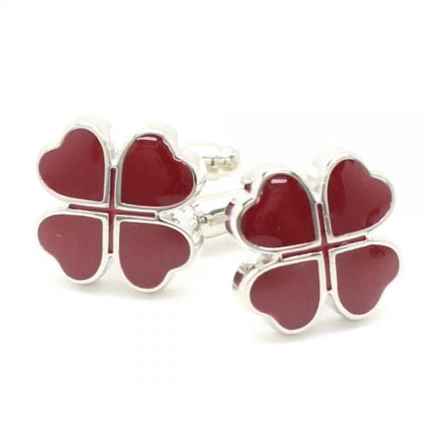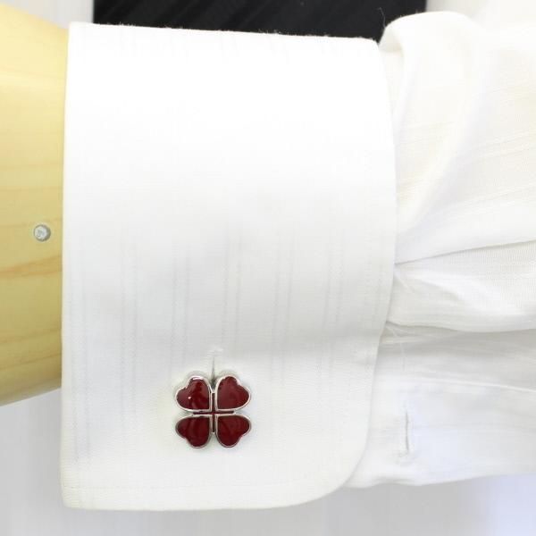 ラッキーを呼ぶ四葉のクローバー・レッドのカフス(カフリンクス/カフスボタン)